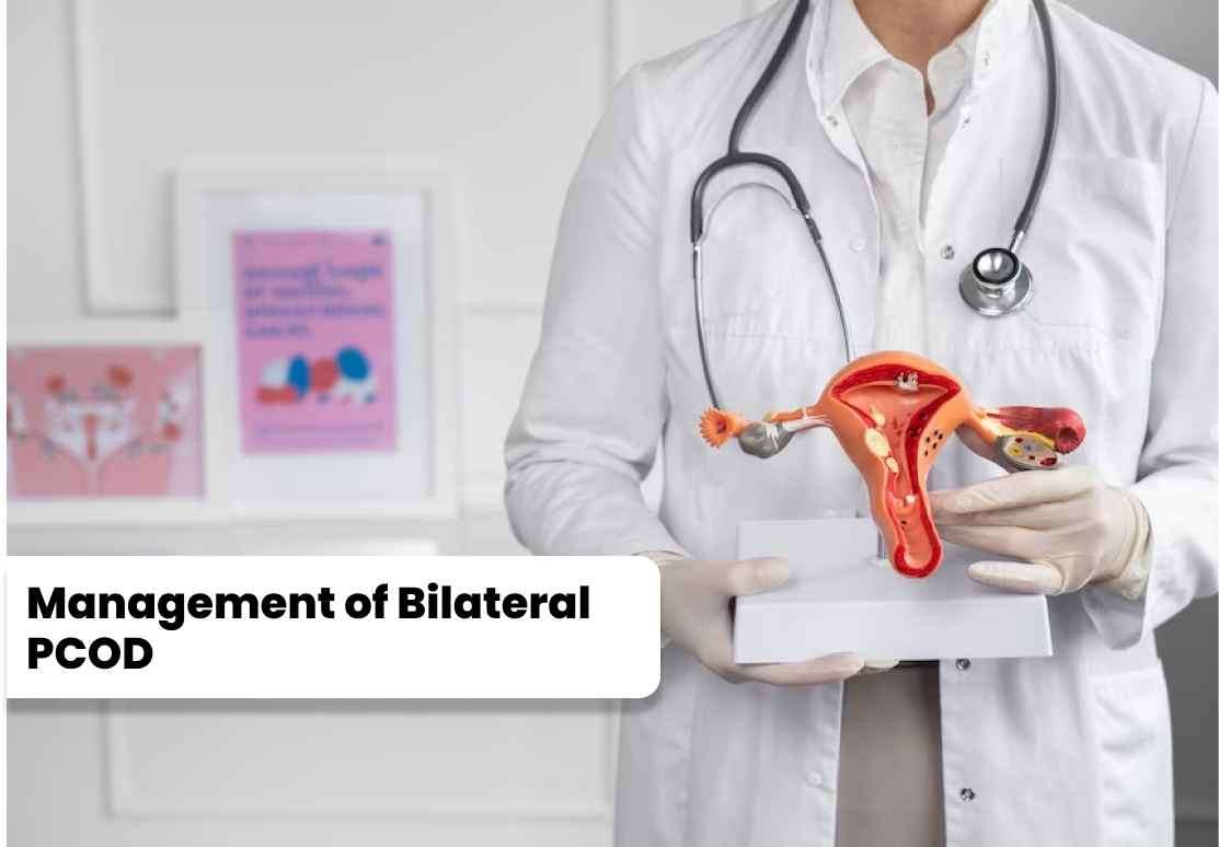 1. Lifestyle Modifications: Adopting a healthy lifestyle, including regular exercise, a balanced diet, and stress management, can help regulate hormonal imbalances, manage weight, and improve overall well-being. 2. Medications: Hormonal contraceptives, such as birth control pills, can help regulate menstrual cycles and control androgen levels. Other medications, such as those targeting insulin resistance or promoting ovulation, may be prescribed based on individual needs. 3. Fertility Treatments: In cases where bilateral PCOD affects fertility, assisted reproductive techniques, such as ovulation induction or in vitro fertilization (IVF), may be considered to help individuals achieve pregnancy. 4. Regular Monitoring: Ongoing monitoring and follow-up with healthcare professionals are essential to assess the effectiveness of the treatment plan, manage symptoms, and address any potential complications.