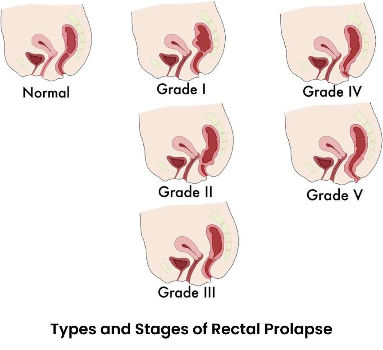 Rectal prolapse can manifest in different forms, ranging from partial to complete prolapse. In partial rectal prolapse, only a portion of the rectal lining protrudes from the anus, while in complete rectal prolapse, the entire rectum extends outside the body. Additionally, rectal intussusception refers to the telescoping of one segment of the rectum into another, which can lead to prolapse.