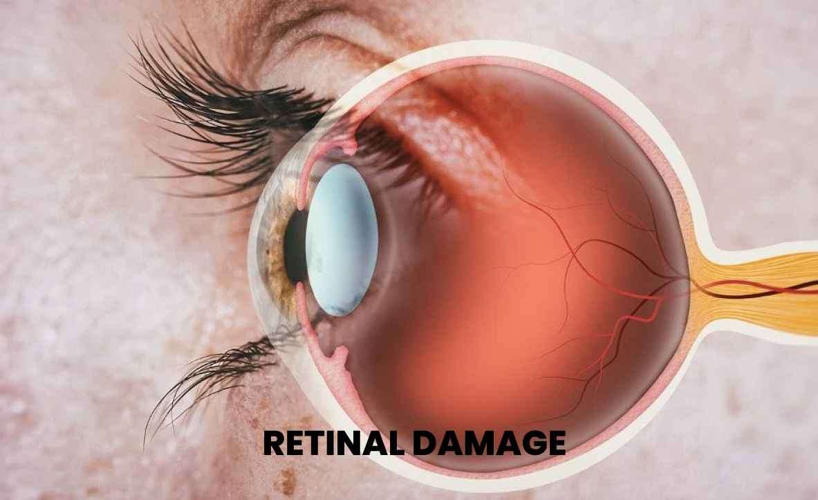 Retinal damage can be caused by several factors, including age-related retinal degeneration, diabetic retinopathy, retinal detachment, and other retinal diseases or injuries. Additionally, exposure to high levels of UV light, smoking, and certain medications can also cause retinal damage.