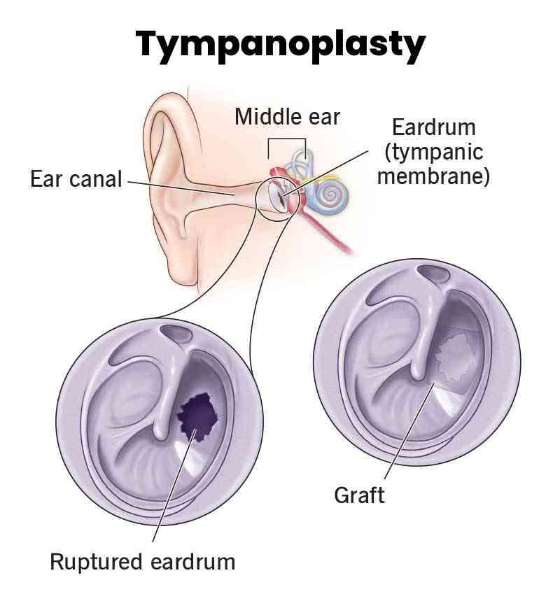 Tympanoplasty is a surgical procedure performed to repair a perforated eardrum or reconstruct the middle ear structures. The eardrum, also known as the tympanic membrane, is a thin membrane that separates the outer ear from the middle ear. It plays a crucial role in transmitting sound vibrations to the middle ear.